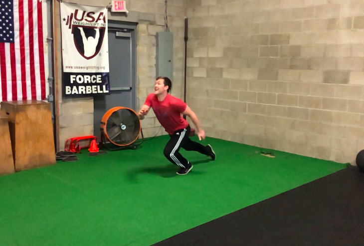 These are some things that need to be assessed and addressed if someone wants to increase his or her performance. An athlete isn’t going to be able to put an adequate amount of force into the ground if they can’t first stabilize their body weight. Jumps are a great way to introduce an athlete to higher rates of force application and absorption without overriding their brains with too much information. Basic jumps like box jumps, broad jumps, and single-leg bounds, are great for the athlete to practice absorbing and producing force at higher rates to get them prepared for more complex tasks, like sprinting. We have an athlete who’s very strong and also pretty fast, but when she first came in, she couldn’t bend her knee when landing on one leg. She only knew how to bend through her hip when landing on all of her single-leg jumps. Now she gets adequate knee bend and doesn’t even have to think about it. To become faster with training, having an understanding of and demonstrating proper jump mechanics is a good foundation from which to build.
